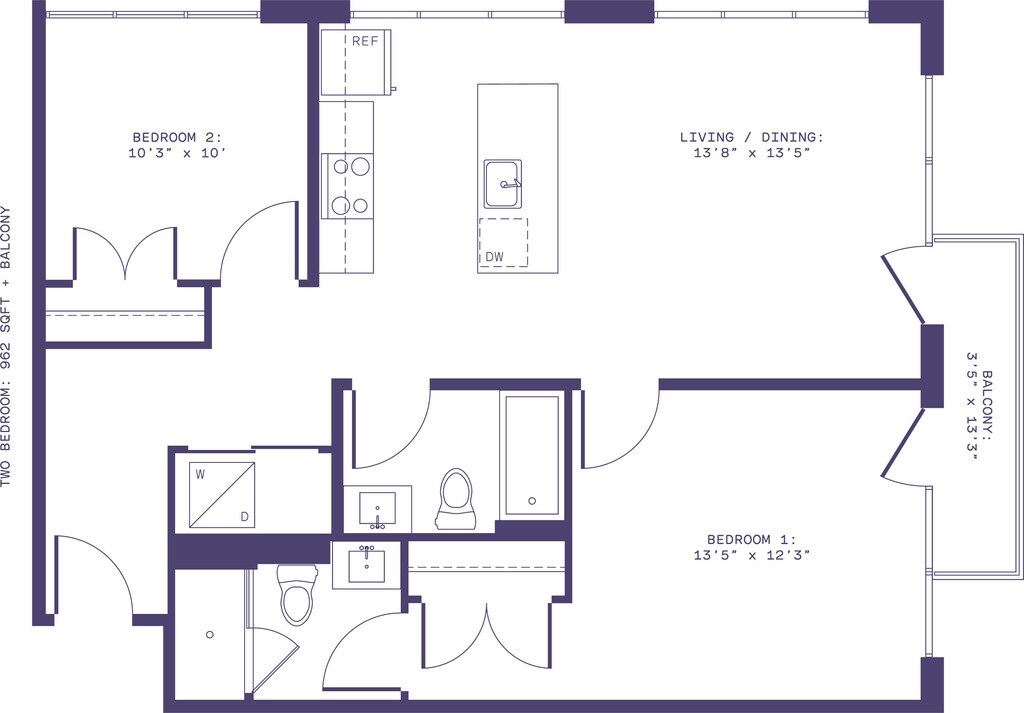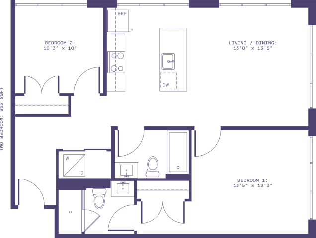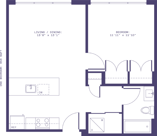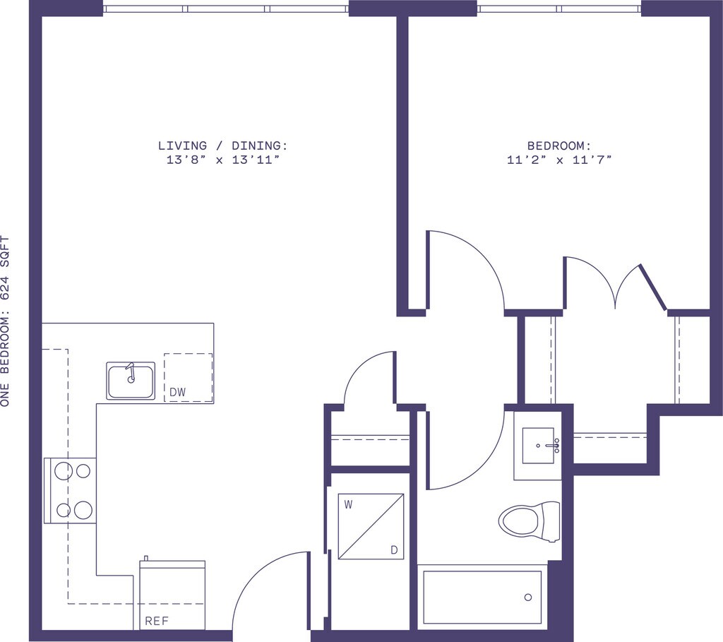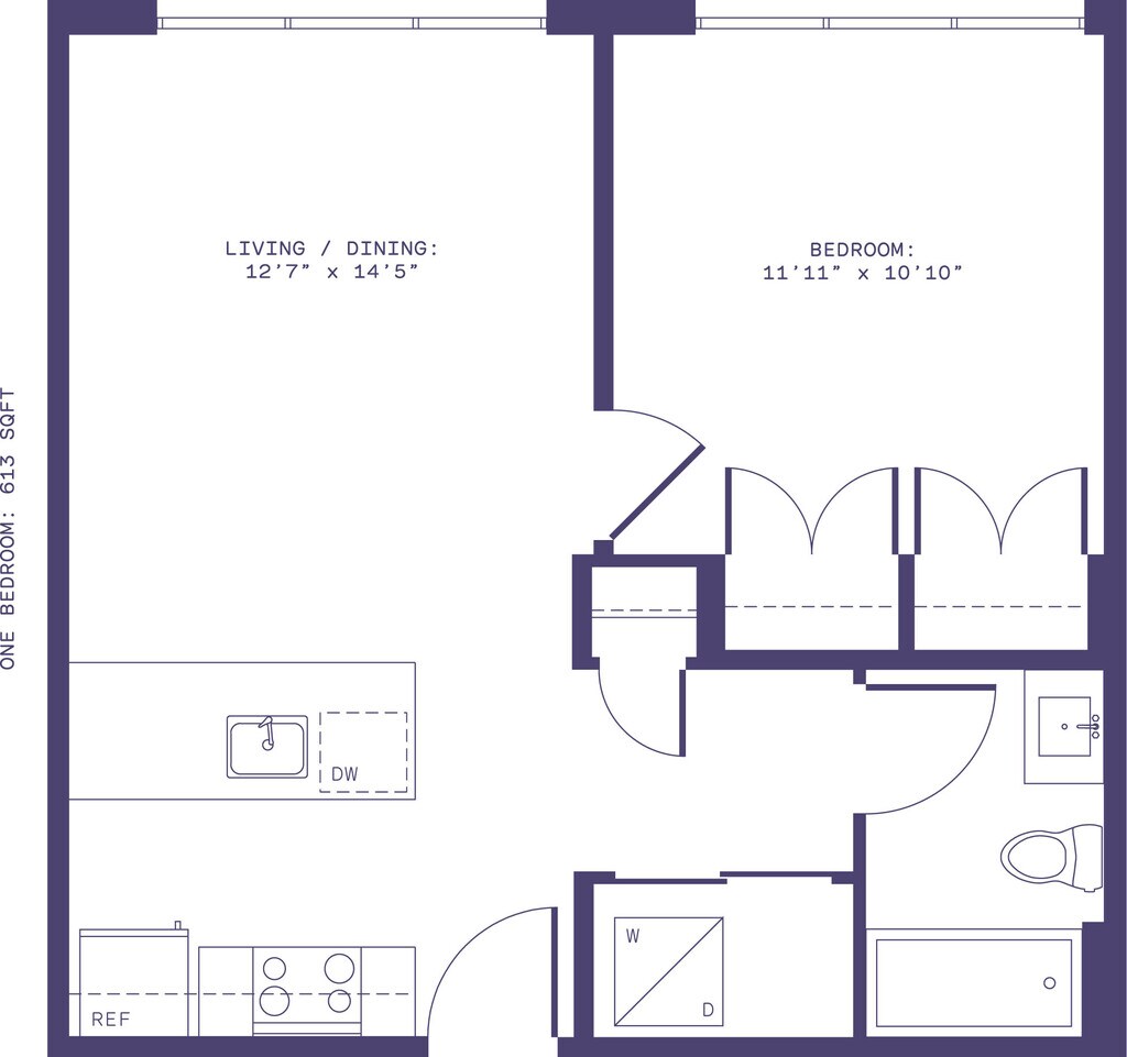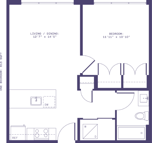 1 Bed, 1 Bath, 613 sq ftModel Gallery