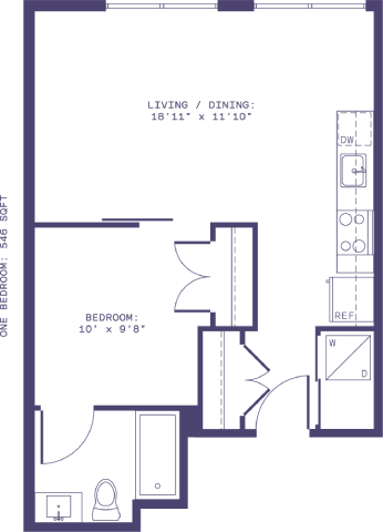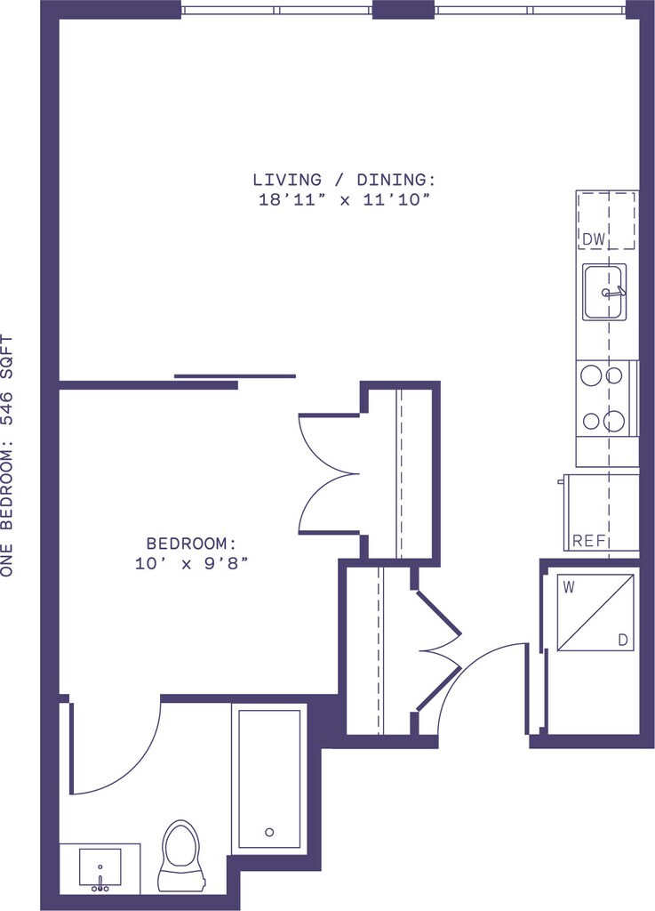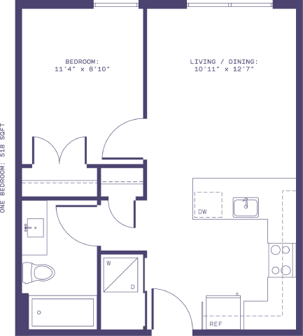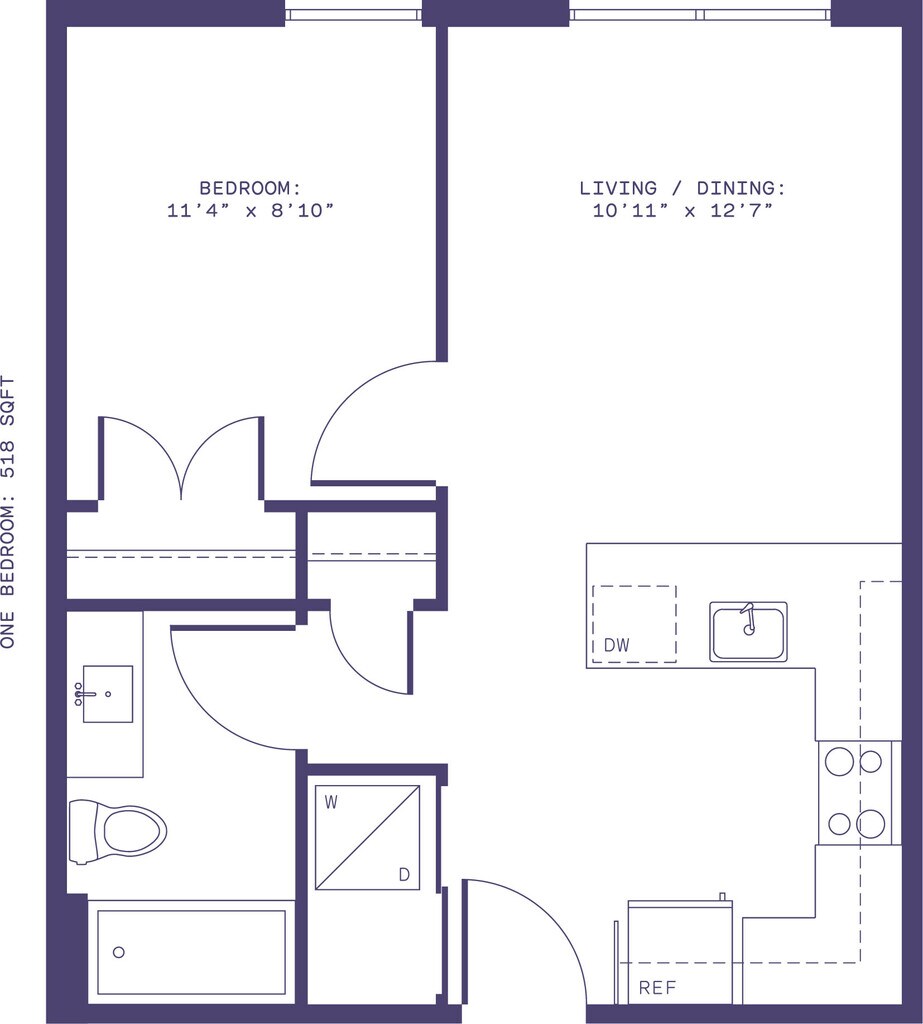 1 Bed, 1 Bath, 518 sq ftModel Gallery