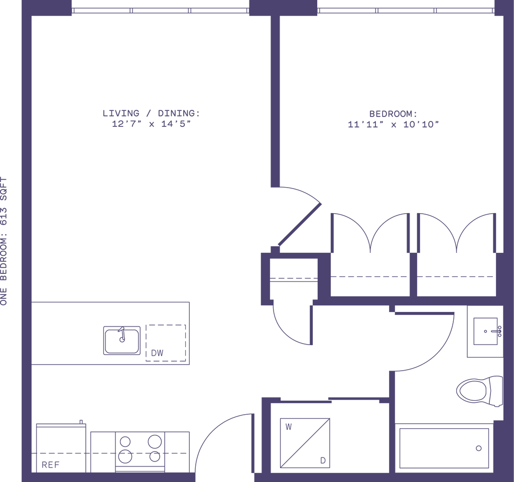 Apartment Model: A3From $1,8581 Bedroom, 1 Bath, 613 sq ftAvailable NowFloor plans are artist's rendering. All dimensions are approximate. Actual product and specifications may vary in dimension or detail. Not all features are available in every rental home. Please see a representative for details.