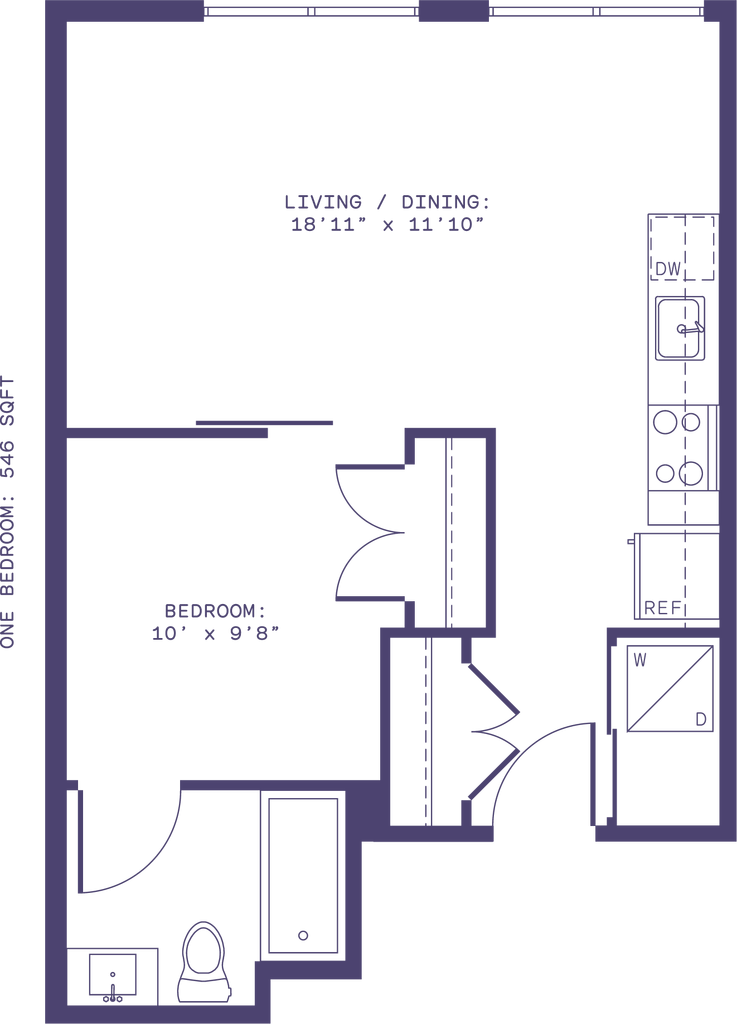 Apartment Model: AJ2$1,6441 Bedroom, 1 Bath, 546 sq ftAvailable NowFloor plans are artist's rendering. All dimensions are approximate. Actual product and specifications may vary in dimension or detail. Not all features are available in every rental home. Please see a representative for details.