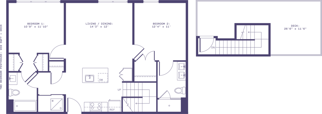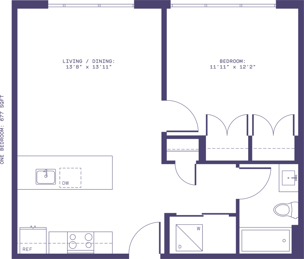 Apartment Model: A6From $2,1261 Bedroom, 1 Bath, 677 sq ftAvailable March 26, 2026Floor plans are artist's rendering. All dimensions are approximate. Actual product and specifications may vary in dimension or detail. Not all features are available in every rental home. Please see a representative for details.
