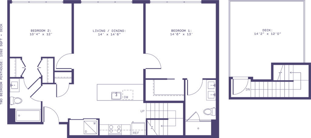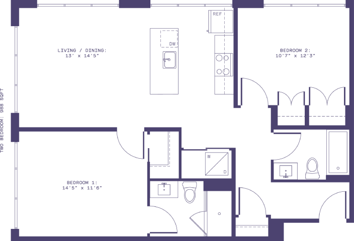 1 Bed, 1 Bath, 677 sq ftAvailable NowModel Gallery