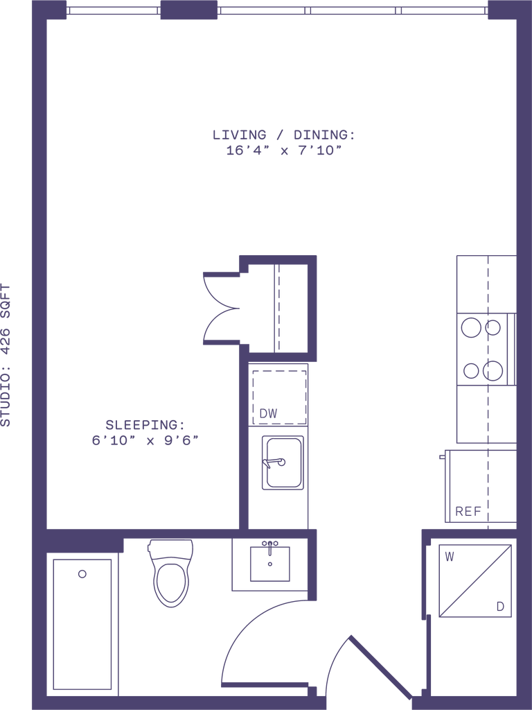 Apartment Model: ST2Call For RatesStudio, 1 Bath, 426 sq ftUnavailableFloor plans are artist's rendering. All dimensions are approximate. Actual product and specifications may vary in dimension or detail. Not all features are available in every rental home. Please see a representative for details.