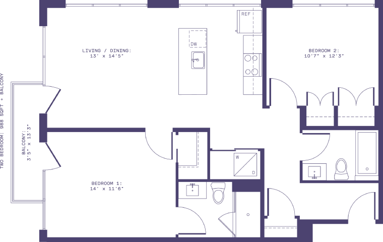 A6 - Floorplan 1 Apartment Unit: 1-404Apartment Model: A6$1,9521 Bedroom, 1 Bath, 677 sq ftAvailable NowFloorplan A4