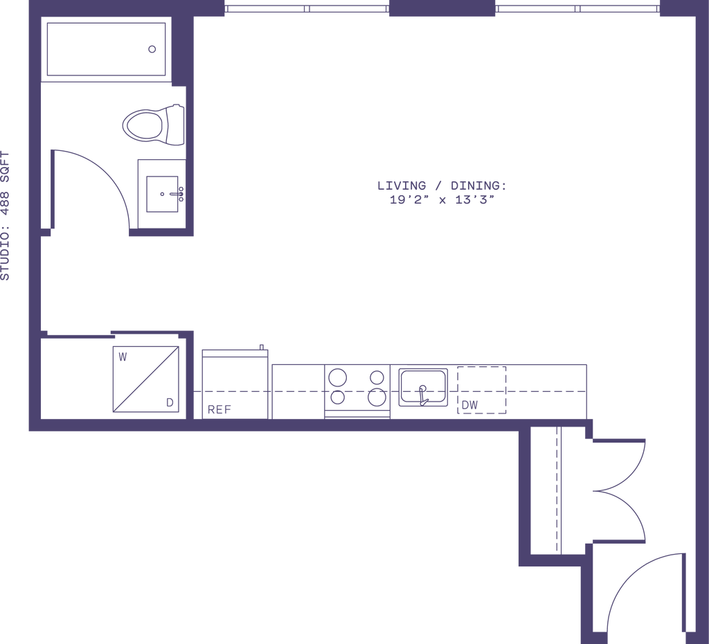 Apartment Model: ST3Call For RatesStudio, 1 Bath, 488 sq ftUnavailableFloor plans are artist's rendering. All dimensions are approximate. Actual product and specifications may vary in dimension or detail. Not all features are available in every rental home. Please see a representative for details.