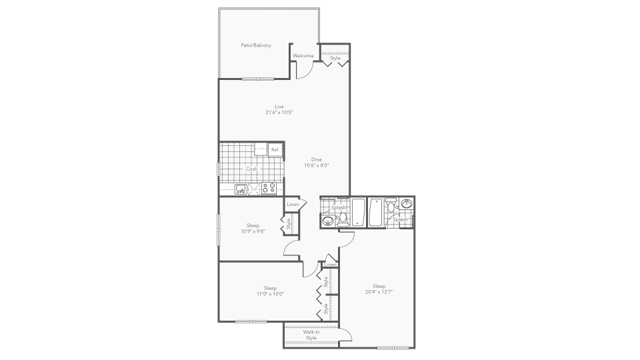 2 Beds, 2 Baths, 1106 sq ftLargest 2 BedroomThis is the largest 2 Bedroom at this PropertyModel Gallery