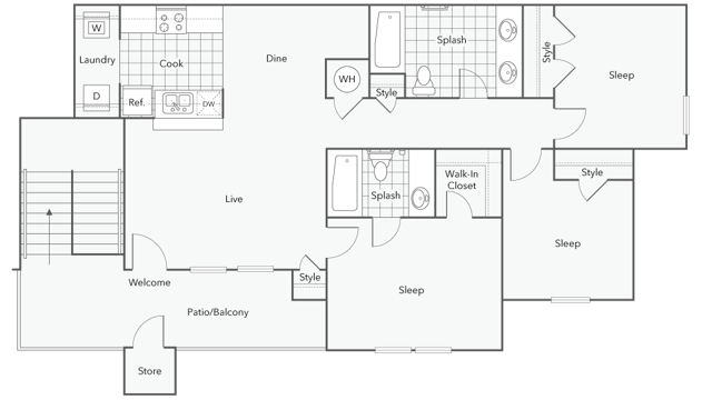 3 Beds, 2 Baths, 1081 sq ftAvailable NowModel Gallery