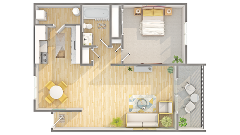 1 Bed, 1 Bath, 592 sq ftModel Gallery