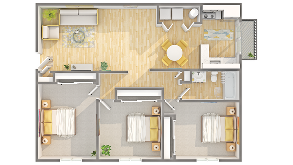 Apartment Model: C1From $2,0153 Bedroom, 1 Bath, 943 sq ftAvailable Now![]()
