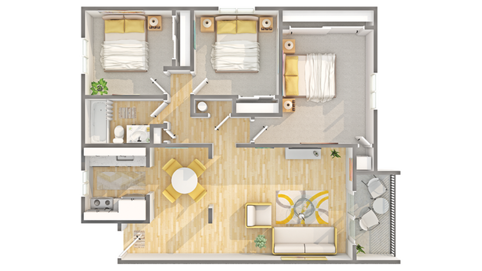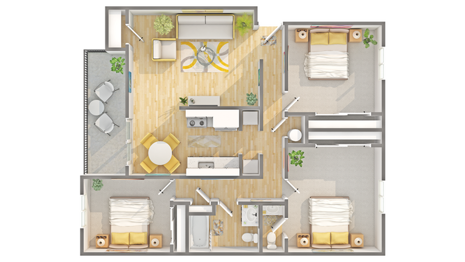 Apartment Model: C3$2,3953 Bedroom, 1.5 Bath, 1300 sq ftUnavailable![]()