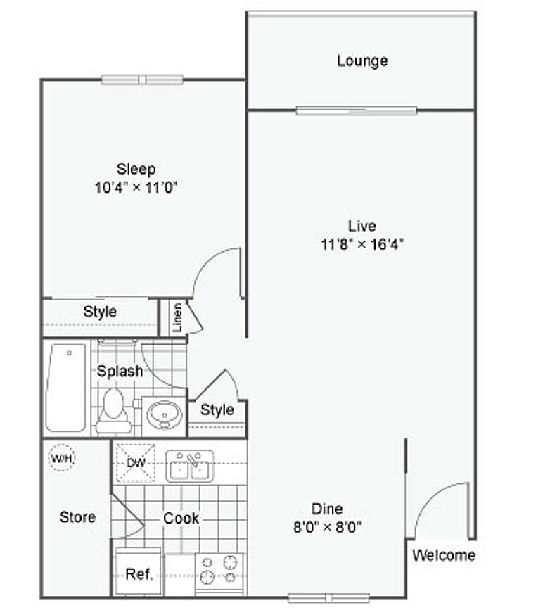 Apartment Model: A1$1,6061 Bedroom, 1 Bath, 492 sq ftUnavailable![]()