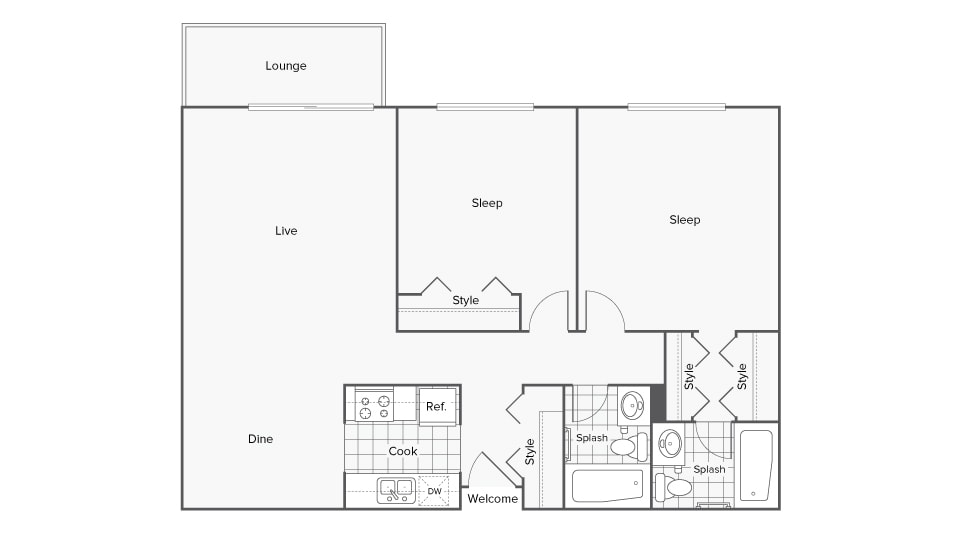 2 Beds, 1 Bath, 971 sq ftAvailable NowModel Gallery