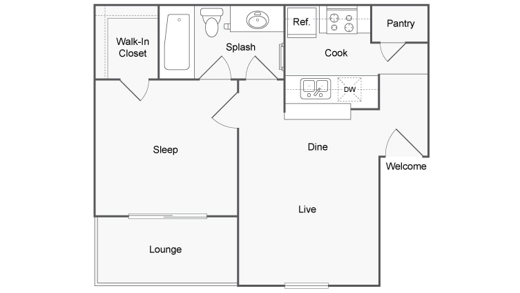 1 Bed, 1 Bath, 650 sq ftAvailable NowModel Gallery