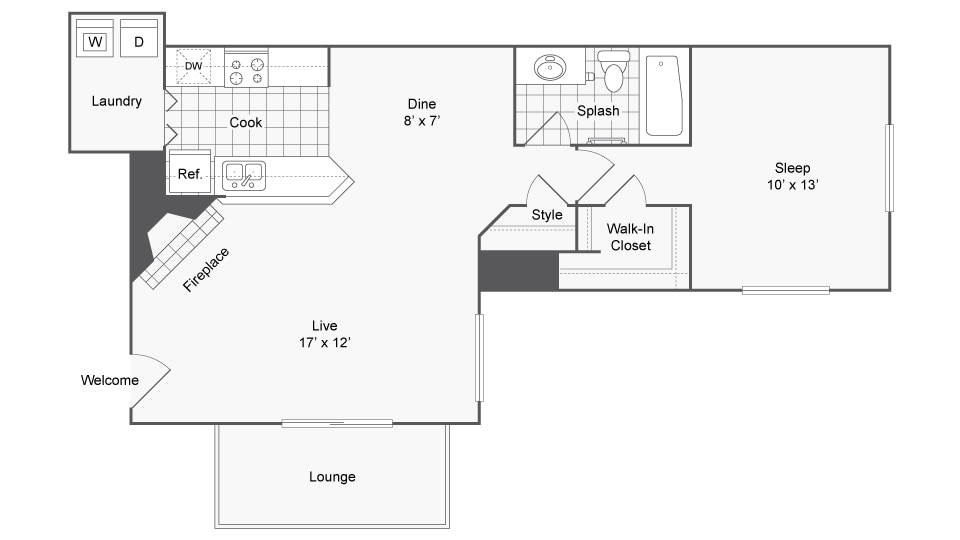 1 Bed, 1 Bath, 674 sq ftAvailable NowModel Gallery