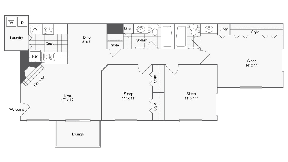 Chelsea - Floorplan 8 Apartment Unit: 500-03Apartment Model: ChelseaFrom $1,8992 Bedroom, 2 Bath, 926 sq ftAvailable NowApartment Unit: 507-10Apartment Model: ChelseaFrom $1,8892 Bedroom, 2 Bath, 926 sq ftAvailable Now3 Bedrooms