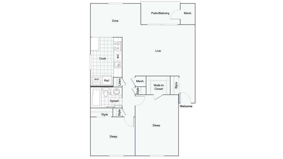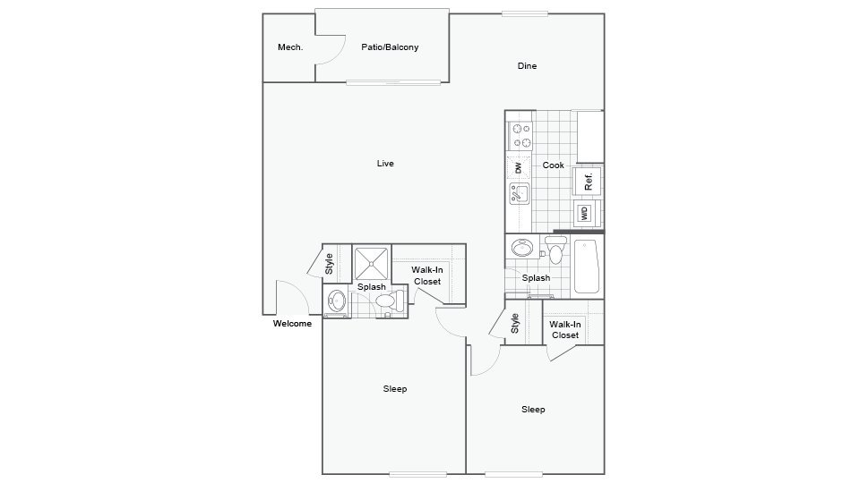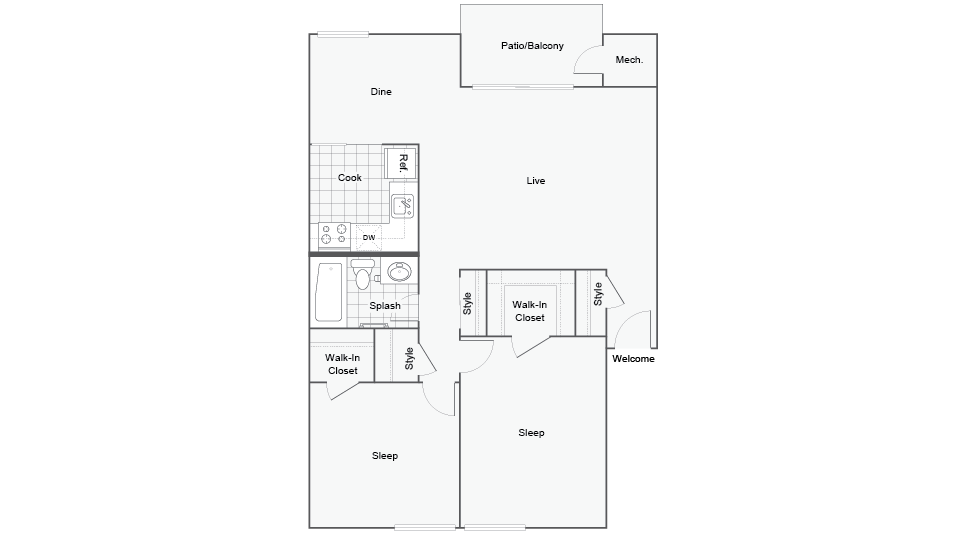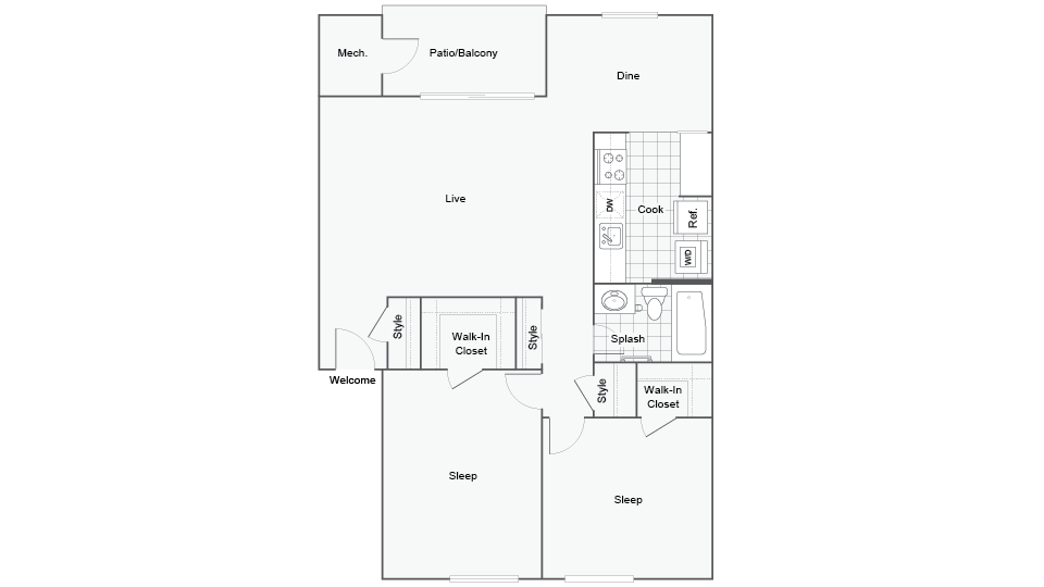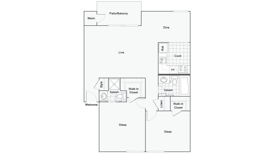 2 Beds, 1 Bath, 870 sq ftAvailable NowModel Gallery
