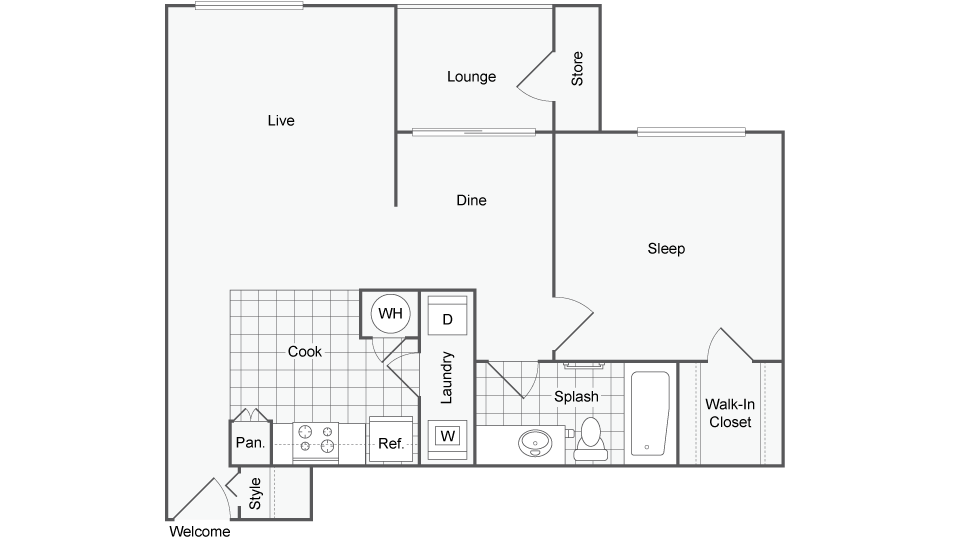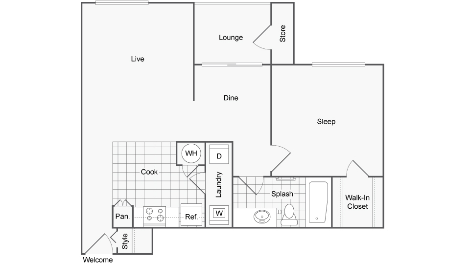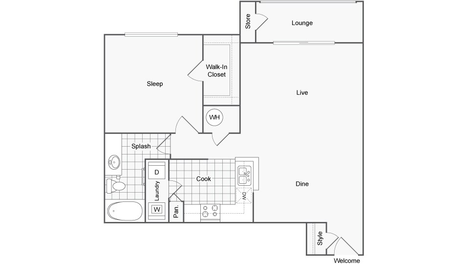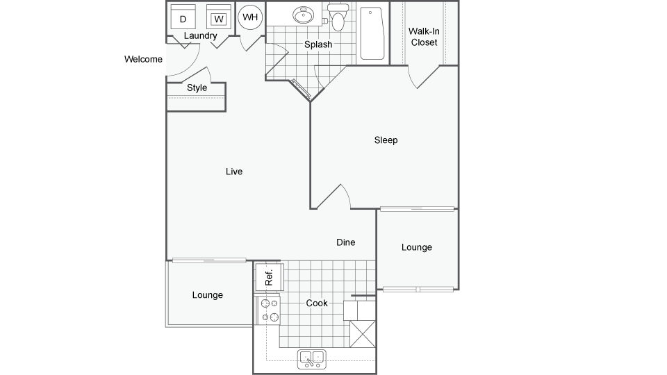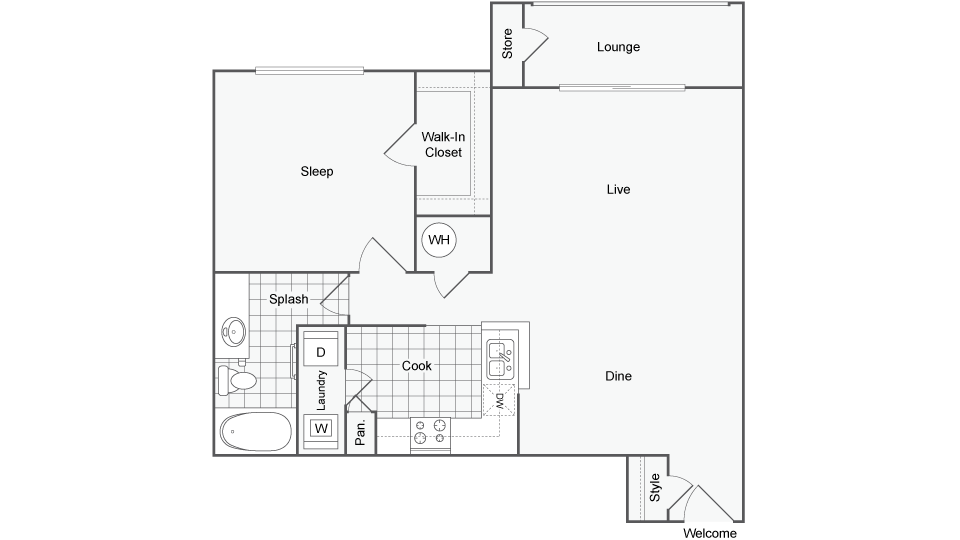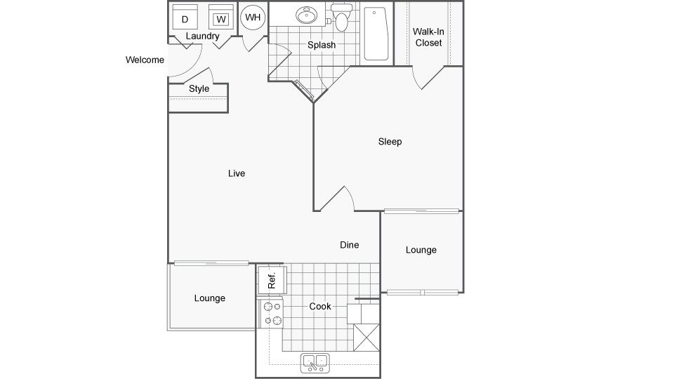 1 Bed, 1 Bath, 761-861 sq ftAvailable NowLargest 1 BedroomThis is the largest 1 Bedroom at this PropertyModel Gallery