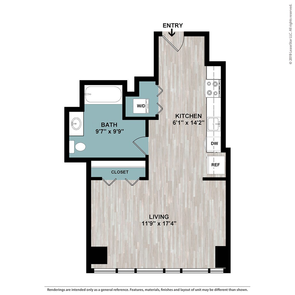 S2 - Floorplan 1 Apartment Unit: 1-1912Apartment Model: S2From $1,999Studio, 1 Bath, 538 sq ftAvailable April 20, 20261 Bedroom