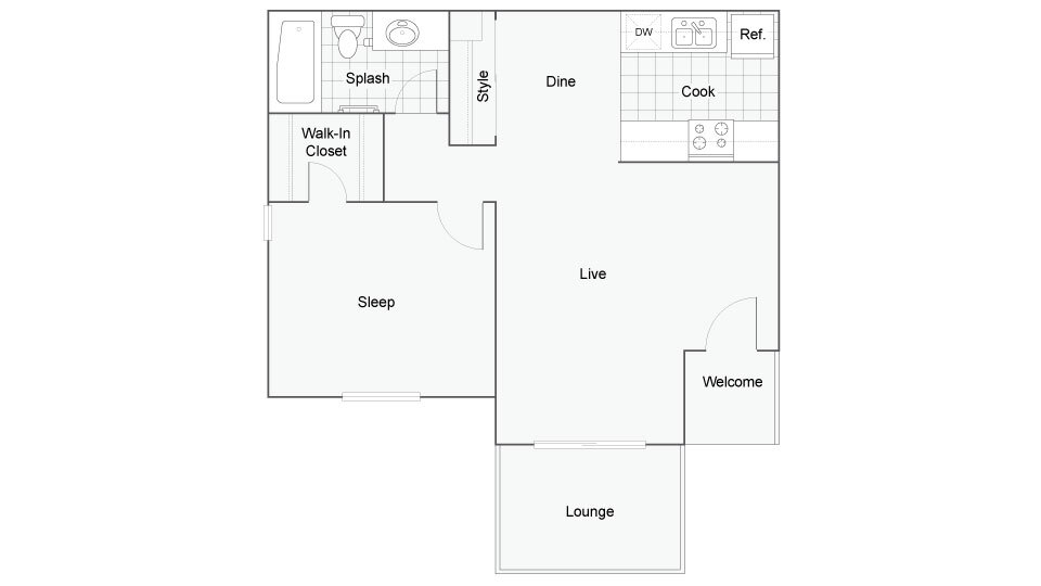 1 Bed, 1 Bath, 600 sq ftAvailable NowModel Gallery