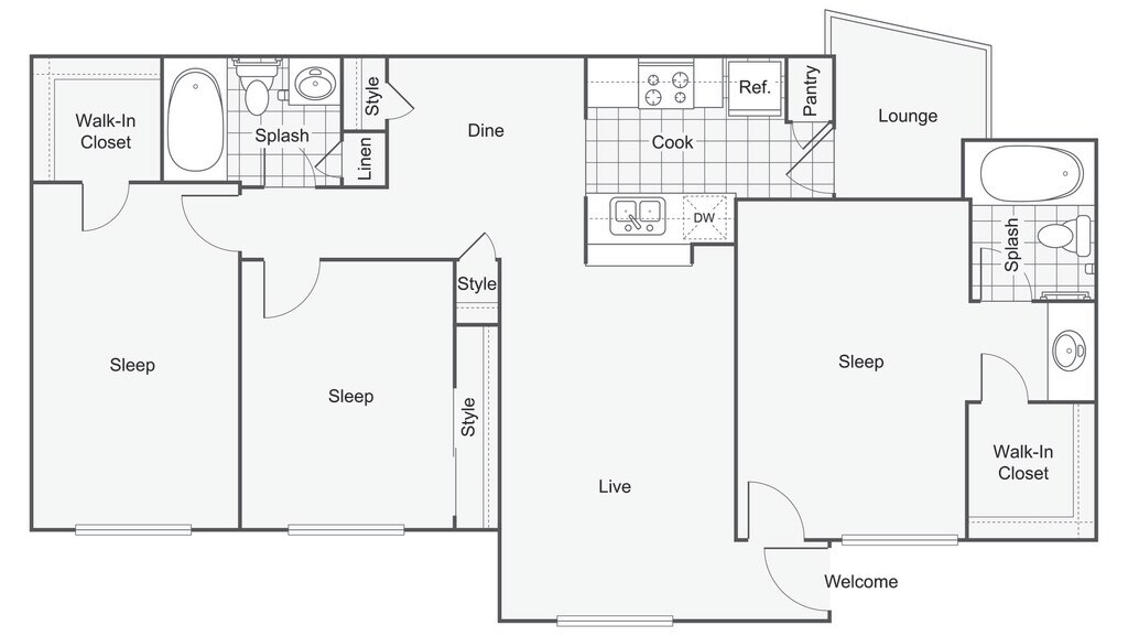 Douglas - Floorplan 1 Apartment Unit: 19-1901Apartment Model: DouglasFrom $1,3902 Bedroom, 2.5 Bath, 1000 sq ftAvailable Now3 Bedrooms