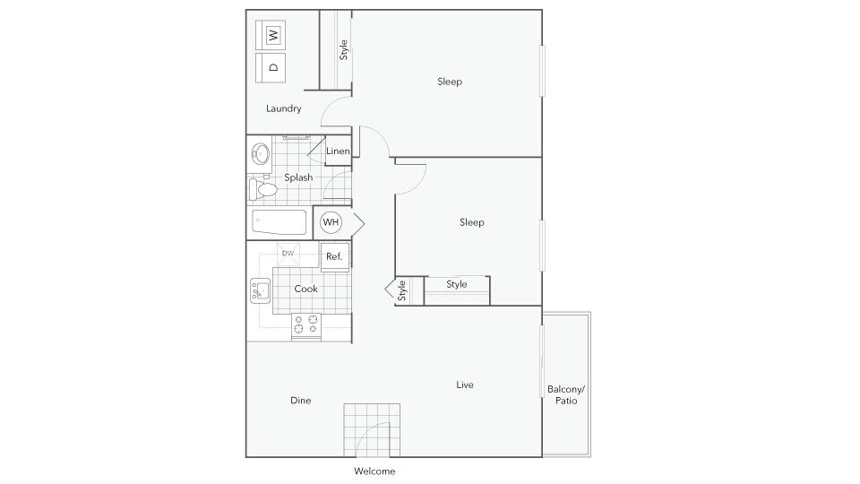 2 Beds, 1 Bath, 895 sq ftAvailable NowModel Gallery