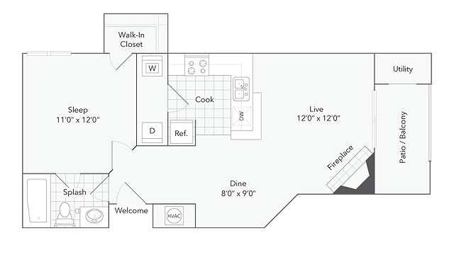 1 Bed, 1 Bath, 697 sq ftAvailable NowLargest 1 BedroomThis is the largest 1 Bedroom at this PropertyModel Gallery