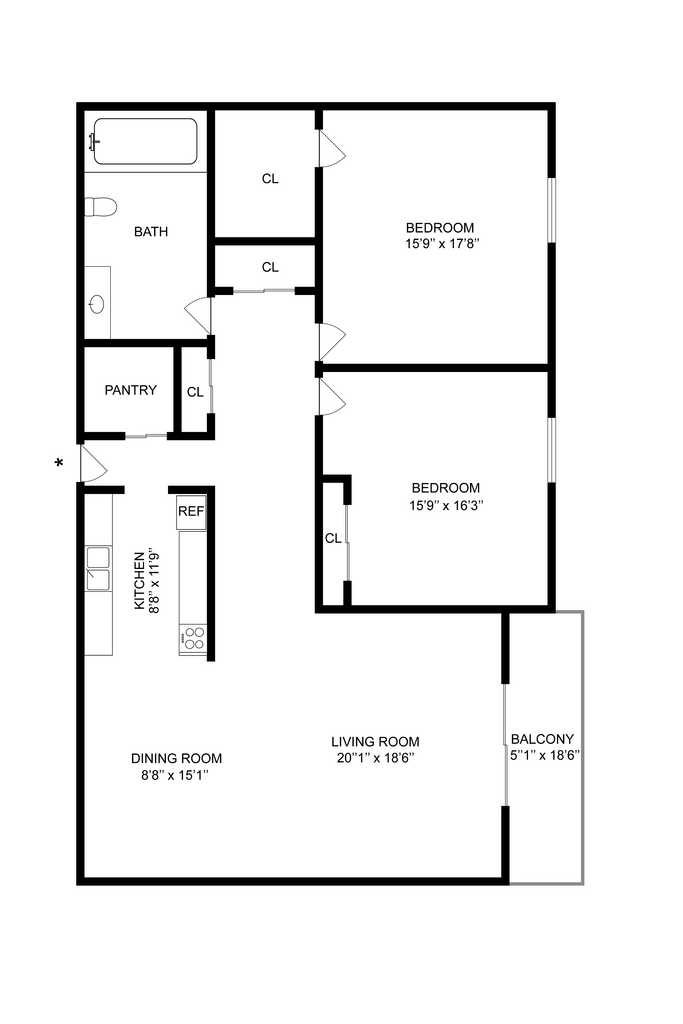 Apartment Model: B1From $2,2092 Bedroom, 1 Bath, 983 sq ftAvailable NowFloor plans are artist's rendering. All dimensions are approximate. Actual product and specifications may vary in dimension or detail. Not all features are available in every rental home. Please see a representative for details.