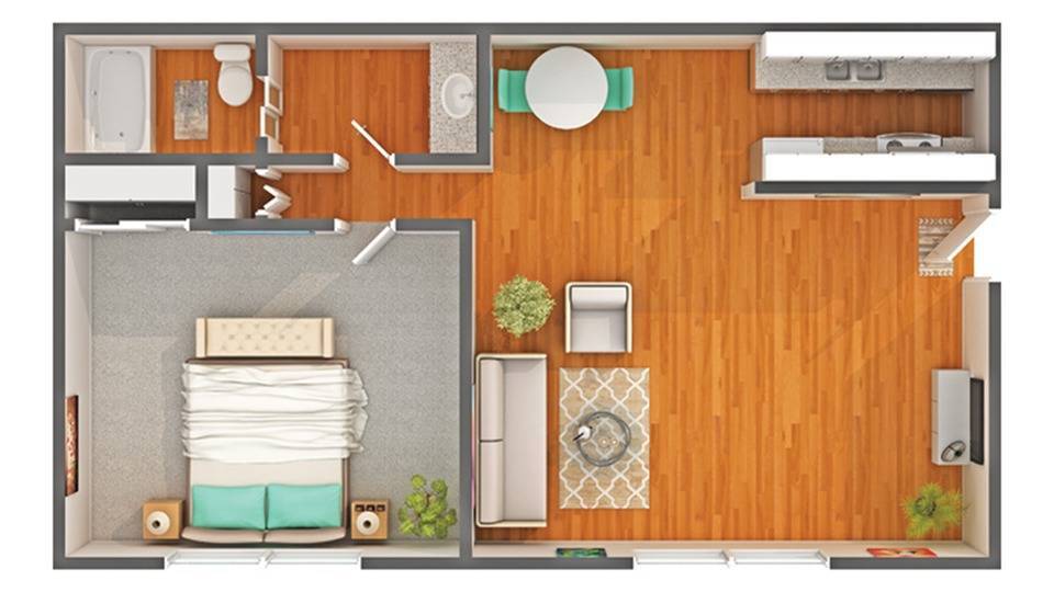 Apartment Model: HazelFrom $1,170Studio, 1 Bath, 340 sq ftUnavailableHazel - Floorplan 1 1 Bedroom