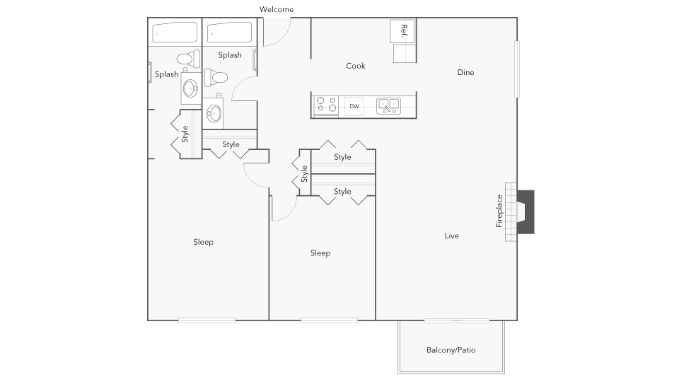 1 Bed, 1 Bath, 725 sq ftAvailable NowModel Gallery