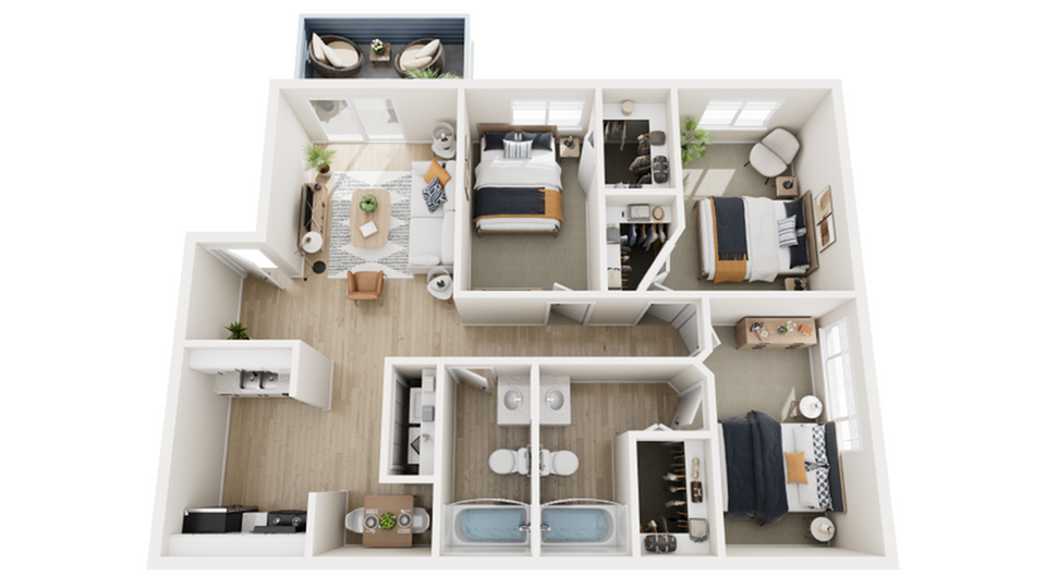 Apartment Model: B3From $1,2952 Bedroom, 2 Bath, 1025 sq ftAvailable NowFloorplansPhotos![]()
