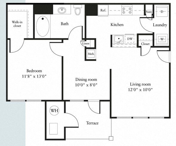 aa2- 1 Bed/1 Bath - Floorplan 1 aa5- 1 Bed/1 Bath