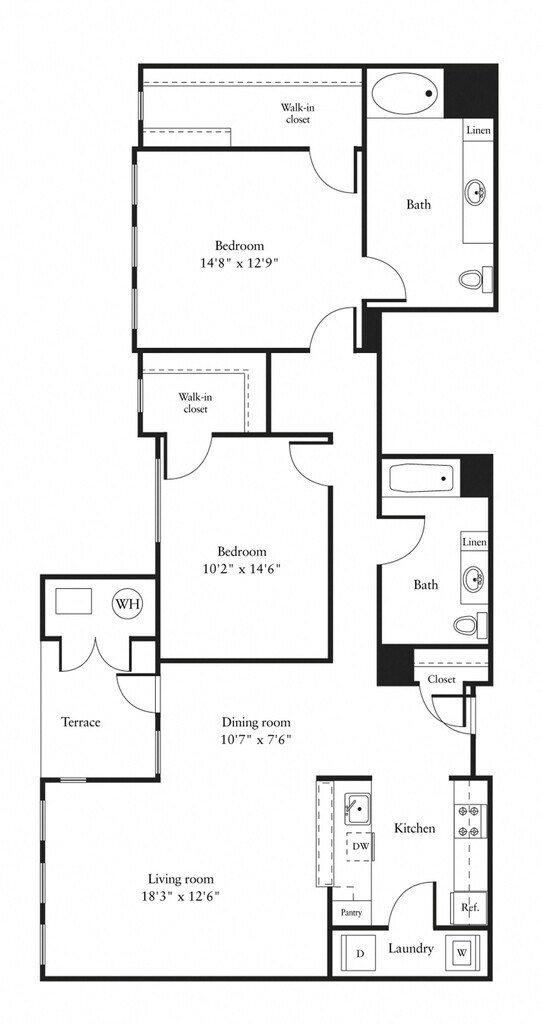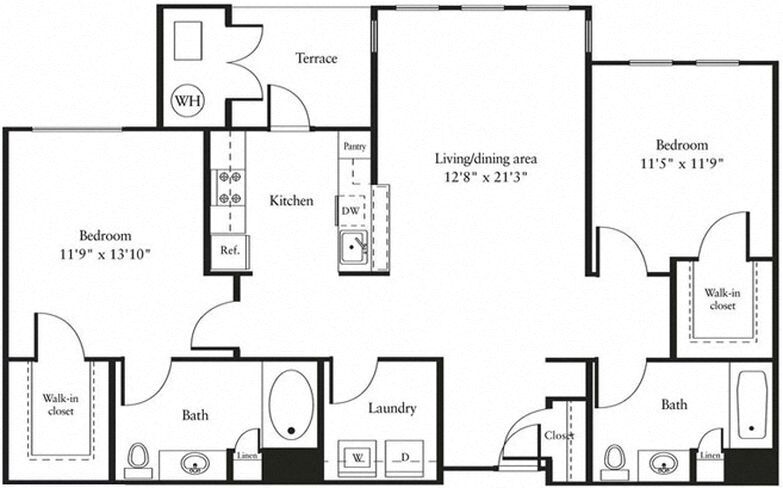 aa5- 1 Bed/1 Bath - Floorplan 1 2 Bedrooms