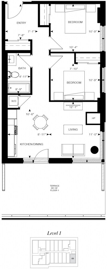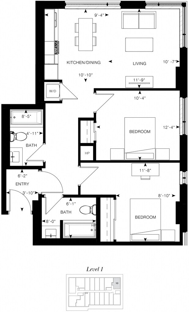 1 Bed 1 Bath 1D XL - Floorplan 1 1 Bed 1 Bath 1C