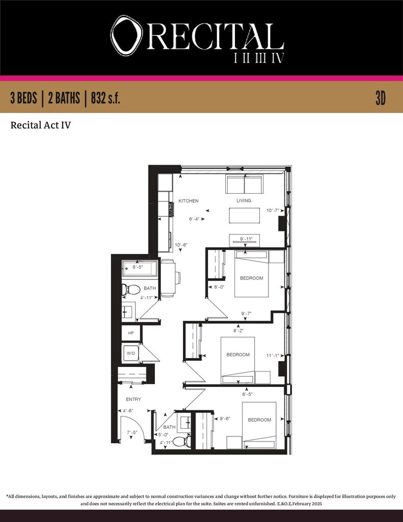3 Beds, 2 Baths, 961 sq ftModel Gallery
