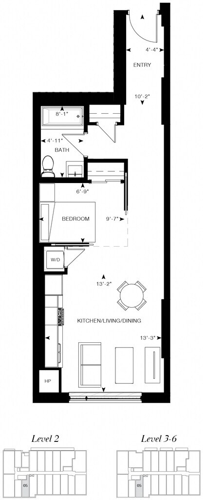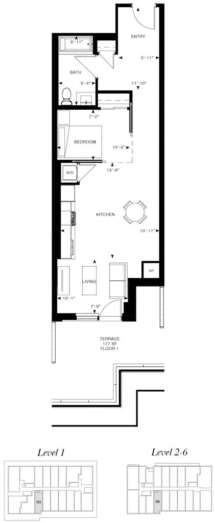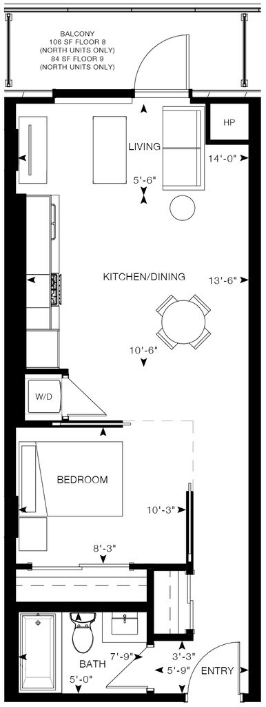 1 Bed 1 Bath 0B XL - Floorplan 1 1 Bed 1 Bath 0C XL