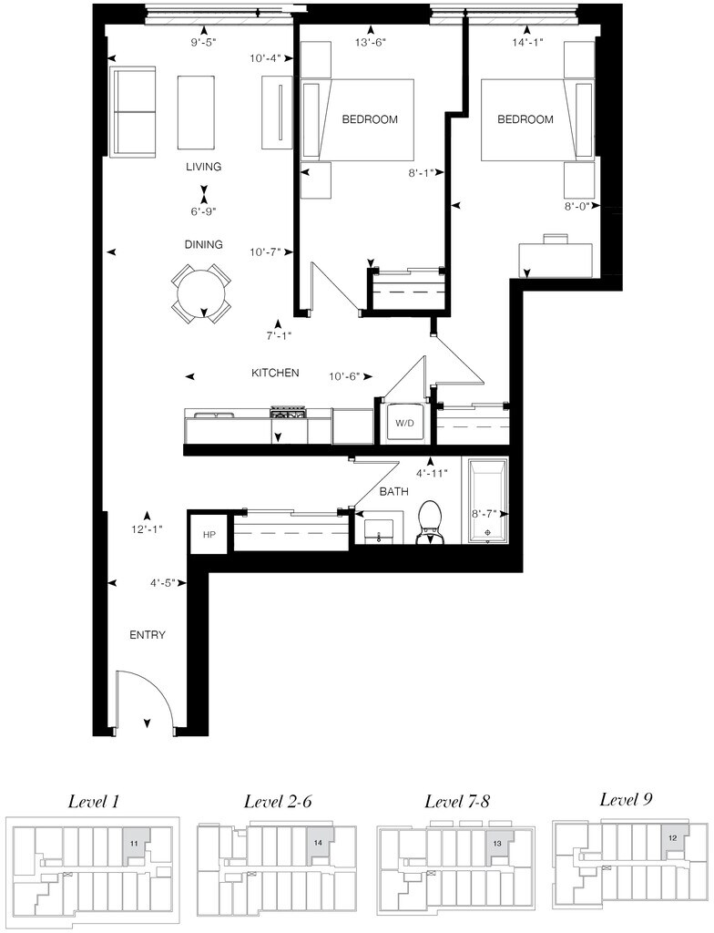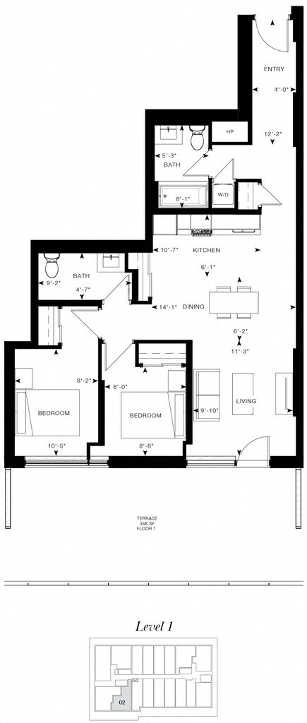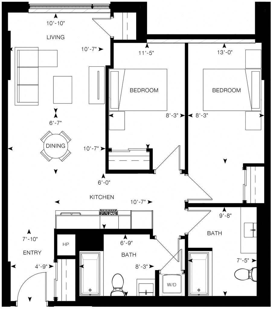 1 Bed 1 Bath 1A XL - Floorplan 2 2 Bedrooms