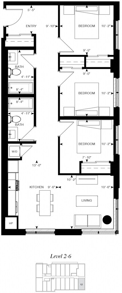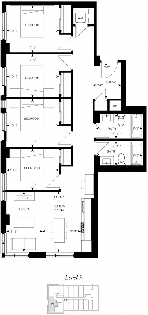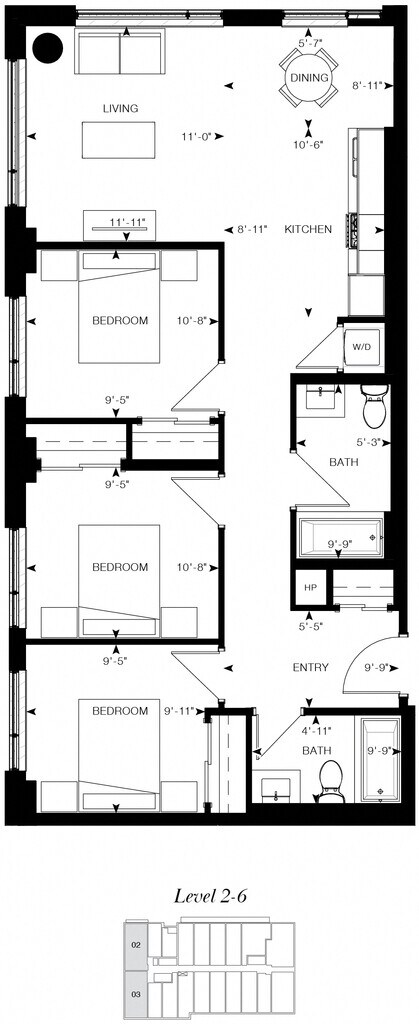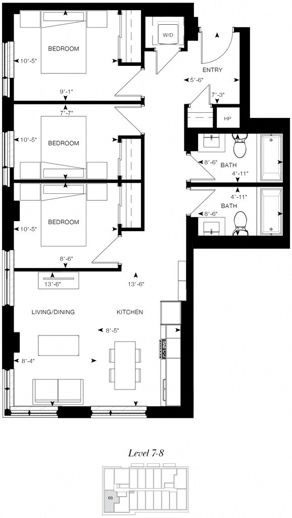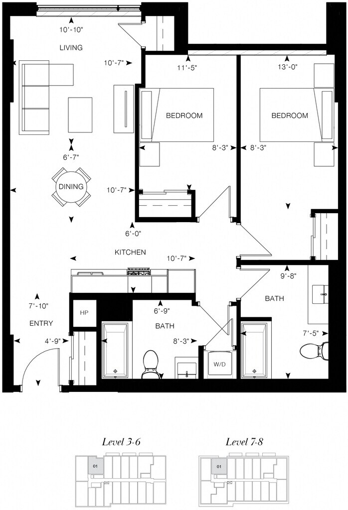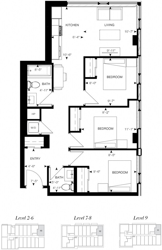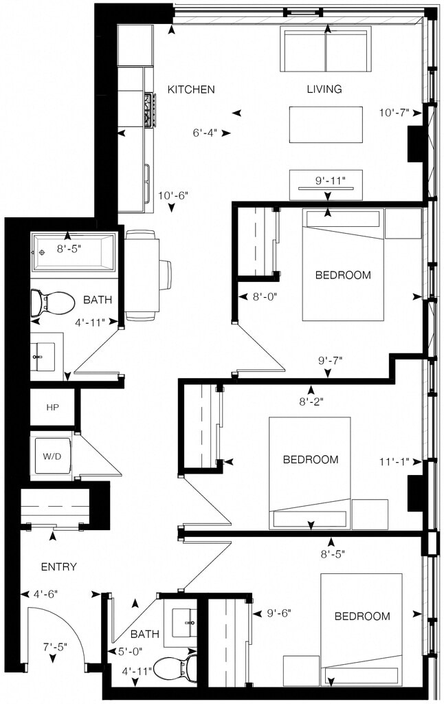 3 Bed 2 Bath 3B - Floorplan 3 3 Bed 2 Bath 3D