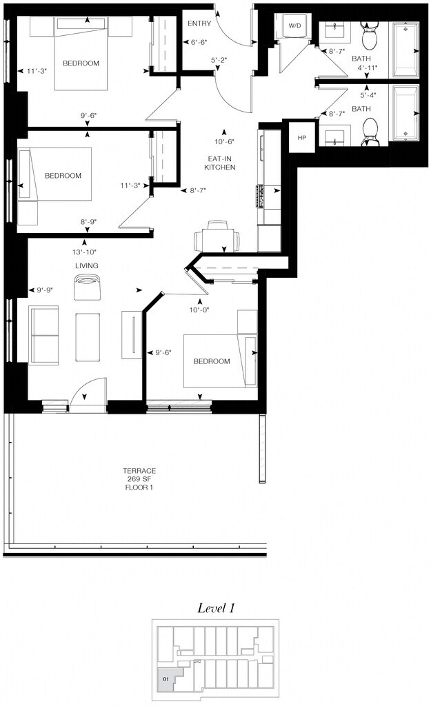 1 Bed 1 Bath 1C XL - Floorplan 3 1 Bed 1 Bath 1D