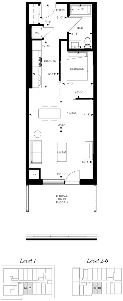 1 Bed 1 Bath 1D - Floorplan 1 1 Bed 1 Bath 1A