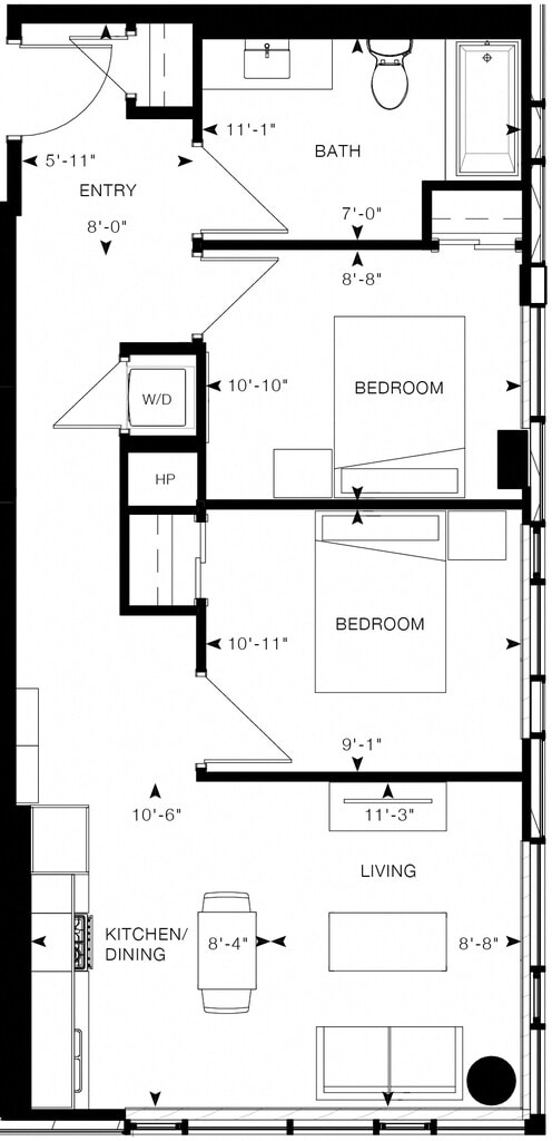 2 Bed 1 Bath 2D XL - Floorplan 1 2 Bed 1 Bath 2G
