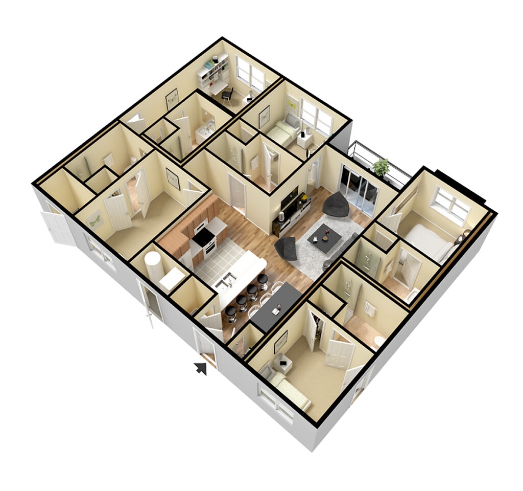 | East Lansing 4 Bedroom Apartments | $1,248 | $499 | $1,825 |