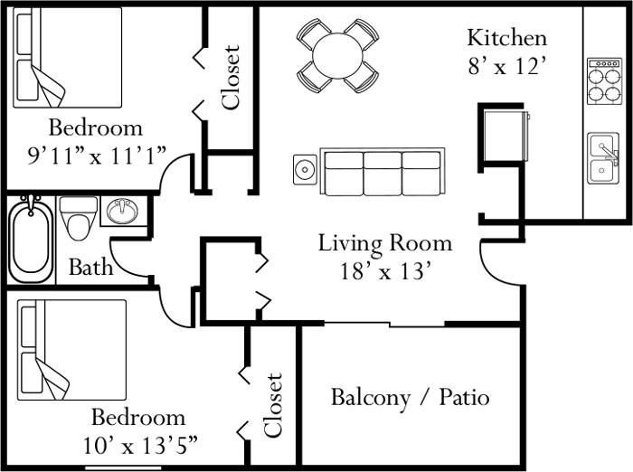 Two Bedroom One Bathroom - Floorplan 1 ![]()