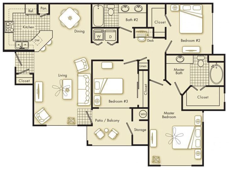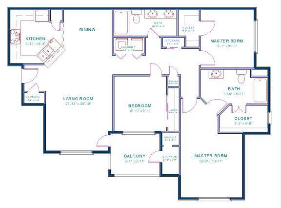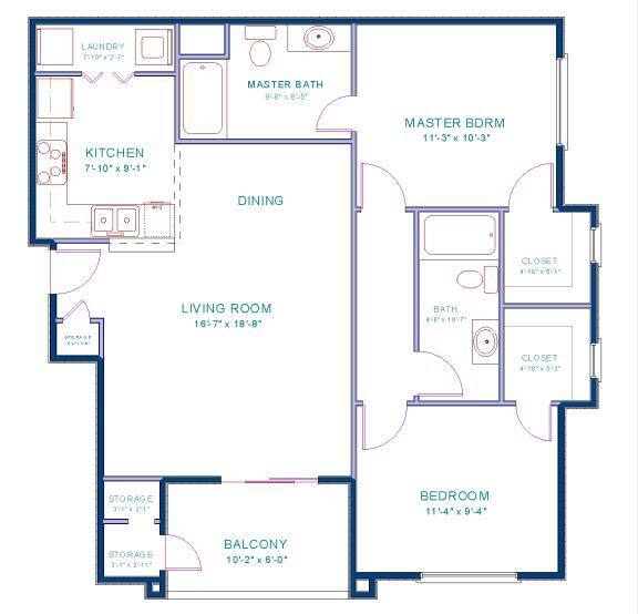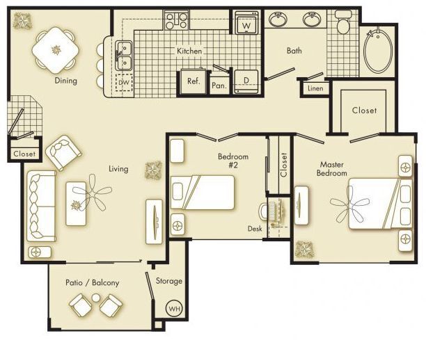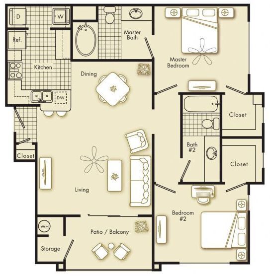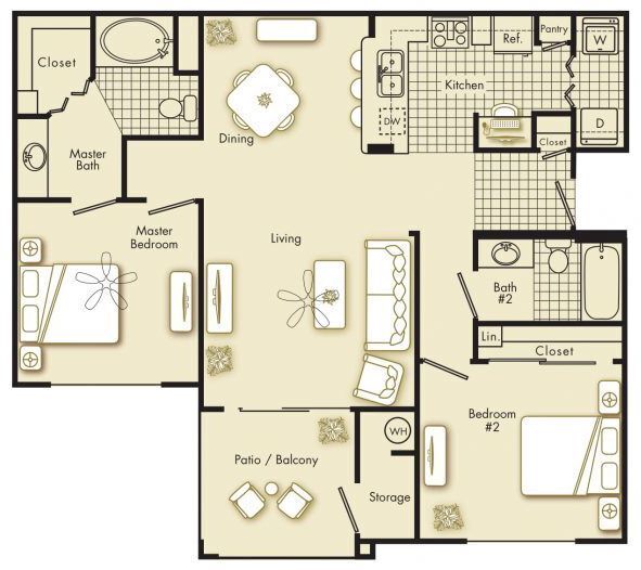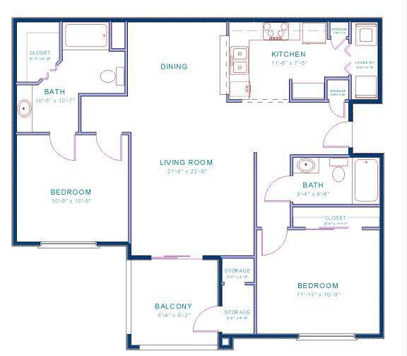 2 Beds, 2 Baths, 1213 sq ftAvailable NowLargest 2 BedroomThis is the largest 2 Bedroom at this PropertyModel Gallery