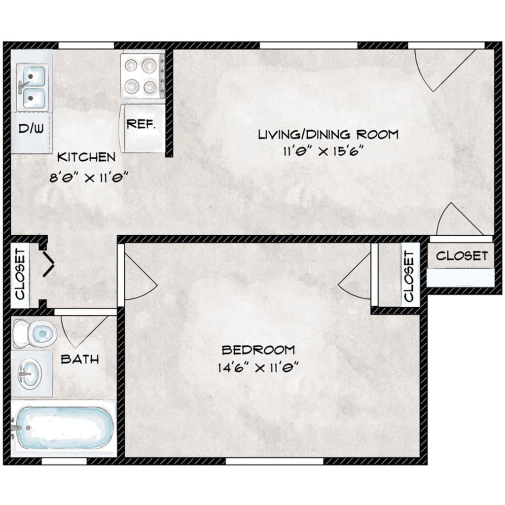 Apartment Unit: D11Apartment Model: 1 Bedroom Low Income$1,3671 Bedroom, 1 Bath, 514 sq ftAvailable April 1, 20262 Bedrooms