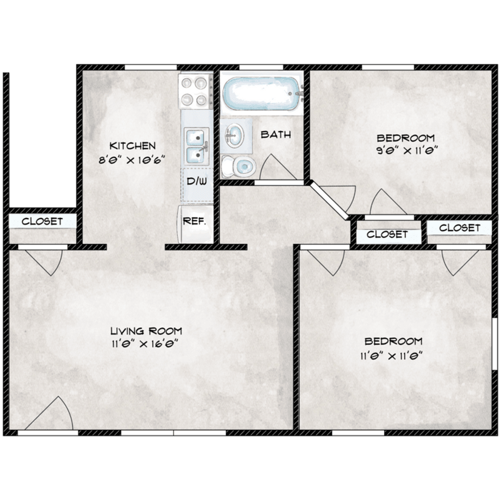 2 Beds, 1 Bath, 629 sq ftAvailable May 1Model Gallery