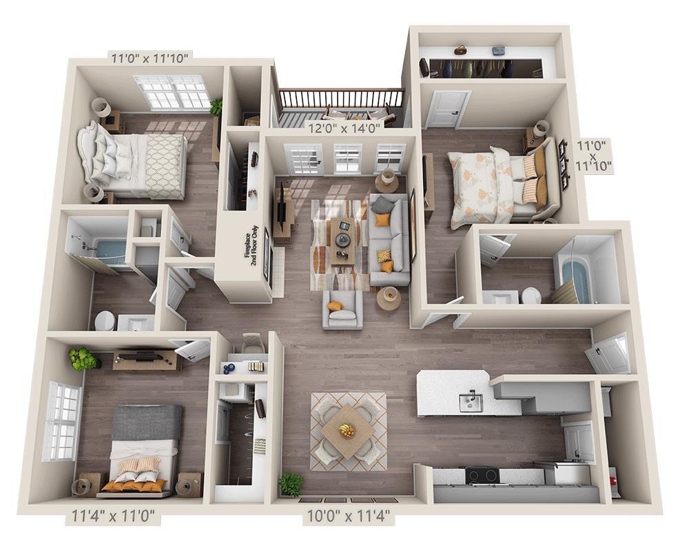 Unit: 1321 - Image 4 Floor plans are artist's rendering. All dimensions are approximate. Actual product and specifications may vary in dimension or detail. Not all features are available in every rental home. Please see a representative for details.