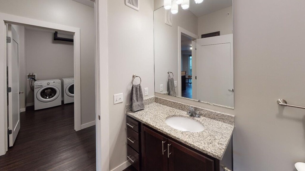 Stainless Steel Appliances Wood Style Flooring Built-In Desk Walk-In Closets In-Unit Washer & Dryer Private Balcony/Patio Granite Countertops Kitchen Island Spectacular Views in Select Units