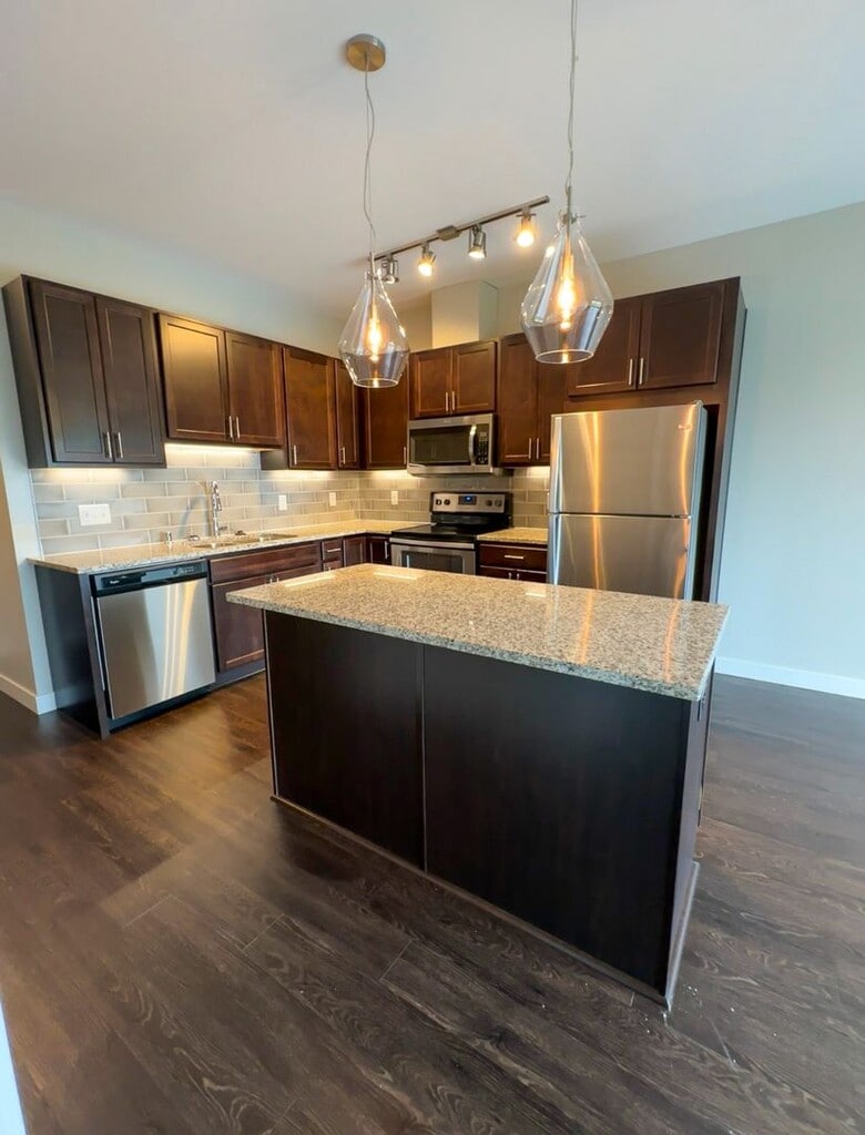 Granite Countertops Wood Style Flooring Stainless Steel Appliances Kitchen Island Built-In Desk Private Balcony Walk-In Closets