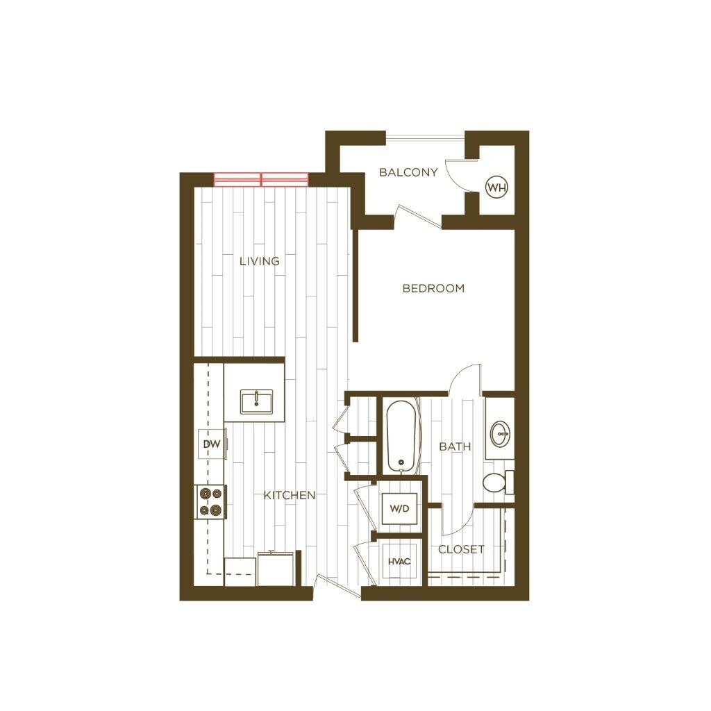 Studio, 1 Bath, 602 sq ftAvailable NowModel Gallery