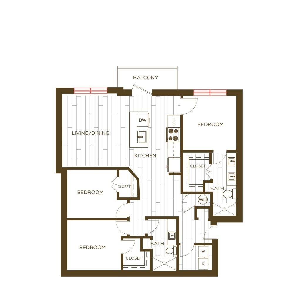 1 Bed, 1 Bath, 909 sq ftAvailable NowLargest 1 BedroomThis is the largest 1 Bedroom at this PropertyModel Gallery